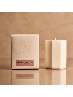 Un parfum créé par notre nez Un parfum aux notes fraîches et aromatiques de menthe poivrée et eucalyptus, pour une plongée dans les bonheurs de l'été Une composition végétale La recharge de bougie est composée de cire 100% végétale et d'une mèche coton Recharge à utiliser dans votre contenant à...